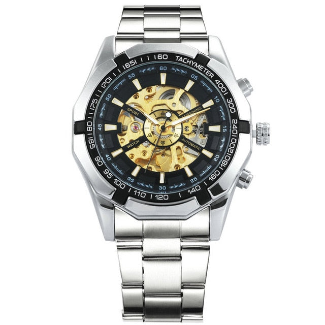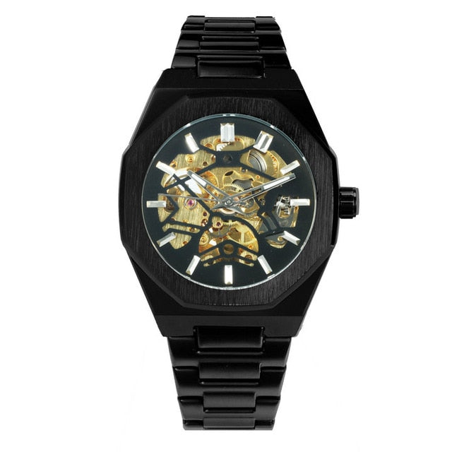 Gold luxury Watch Unisex Steel Strap Skeleton Mechanical Top Brand